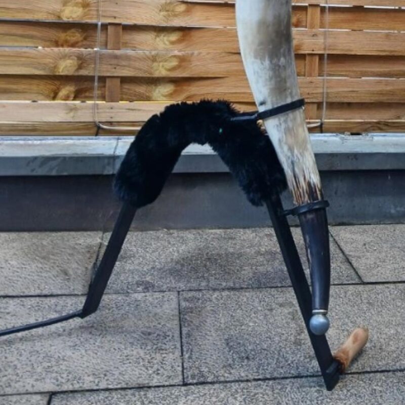 Für ein Blumenhorn-Gestell benötigt er zusammengefasst rund zweieinhalb Arbeitstage. Im Frühjahr 2025 befanden sich vier Hörner zur Reparatur und fünf zur kompletten Neuanfertigung in seiner sporadischen Werkstatt. Dabei standen auch noch vier der neuen Gestelle zum Erwerb offen. Doch ist er sich gewiss, dass die Nachfrage sein Angebot langfristig abdeckt. Denn manche Züge bekunden sogar Interesse nach einem Zweithorn, um so ihre Logistik an den Kirmestagen zu optimieren. Auch der Hubertuszug Silberfüchse, in dem Florian passives (Ehren-)Mitglied ist, konnte sich bereits von seinem Handwerk mit ihrem neuen Gestell überzeugen.